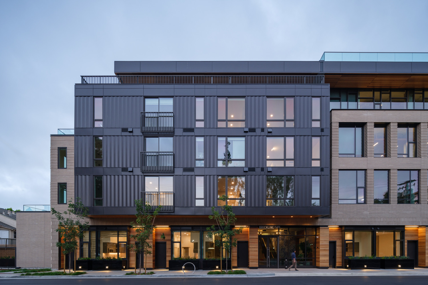 Just steps from San Mateo, California’s regional transit hub, WRNS Studio’s Brickline delivers a gold-standard solution for transit-oriented urban infill—literally. Achieving LEED Gold certification, the mixed-use development pairs post-tensioned concrete office spaces with light-frame wood residential units in a distinctive side-by-side configuration. Wood plays a central role, not just structurally but in the project’s expression—cedar soffits and cladding and white oak interiors bring a domestic warmth to the retail and commercial spaces. Along with reducing carbon, the hybrid approach supports a design that is context-sensitive, cost-efficient, and deeply rooted in place, drawing on the brick, terracotta, and fine-grained storefronts that have long defined San Mateo’s architectural heritage.