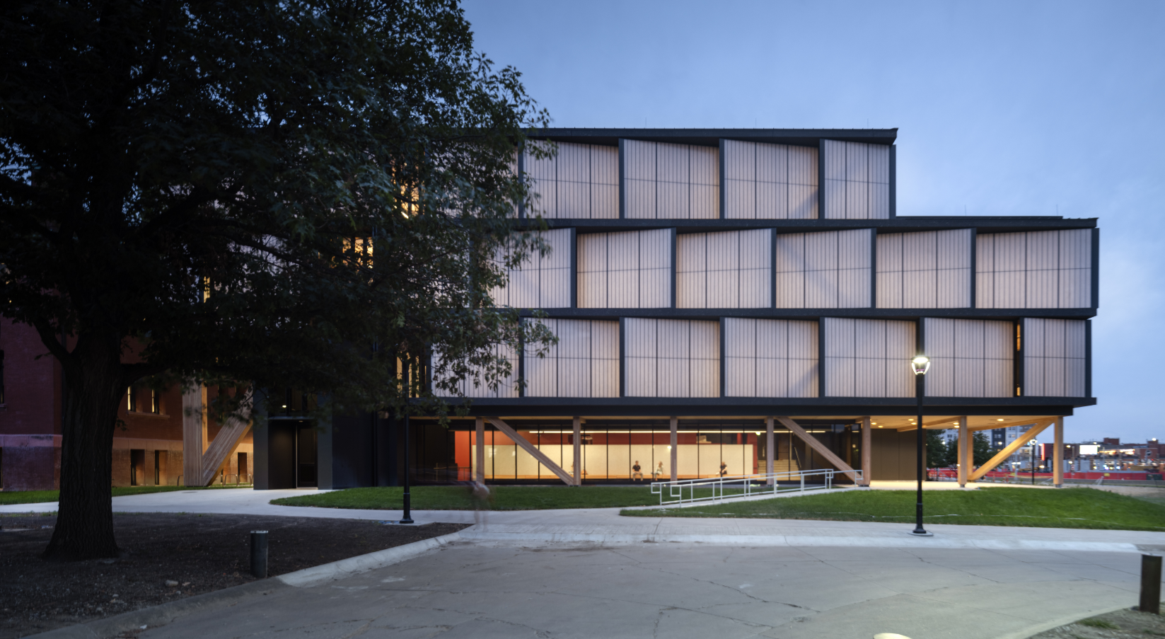 Designed by NADAAA in collaboration with HDR, the HDR Pavilion at the College of Architecture at the University of Nebraska–Lincoln reframes the academic building as both teaching space and teaching tool. The mass timber addition connects three existing buildings within the Architecture Hall complex, using CLT construction to make structure, load paths, and lateral systems fully visible. More than an expression of sustainability, the project functions as a living laboratory. This supports hands-on learning, tours, and real-time study of mass timber performance, while extending a campus legacy that dates back to 19th-century timber construction. Efficient, direct, and deliberately unflashy, the pavilion demonstrates how clarity, craft, and carbon-conscious design can quietly shape architectural education.