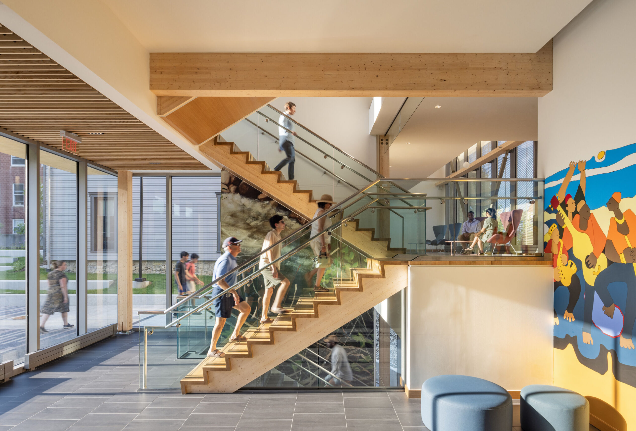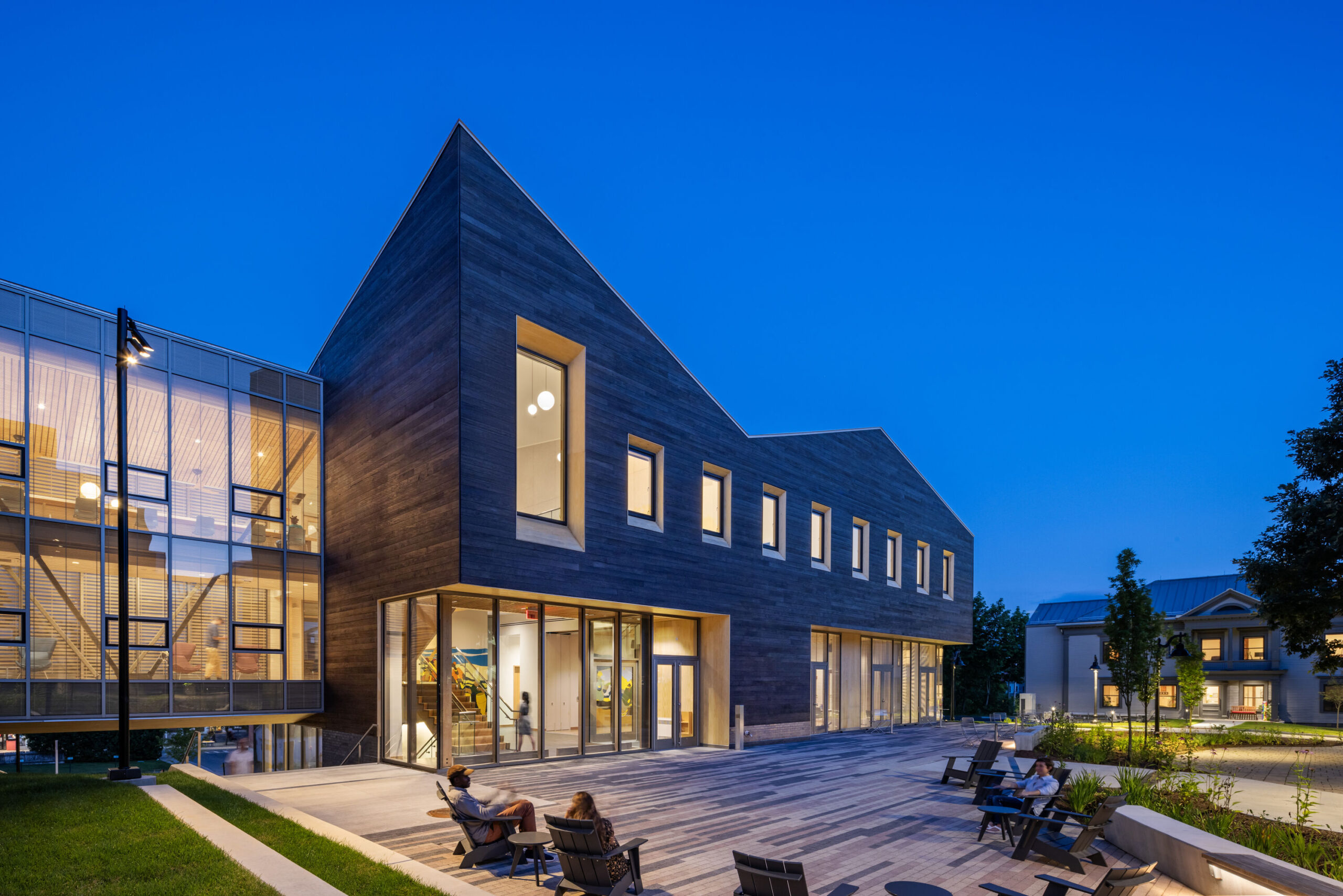 At Williams College, the Davis Center weaves together architecture, activism, and material legacy. Designed by Leers Weinzapfel Associates, the project unites renovated 19th-century post-and-beam houses with a new hybrid mass timber and light-frame addition. Reclaimed cedar, white oak flooring, and exposed timber structure create a low-carbon, biophilic environment that feels simultaneously contemporary and deeply rooted in place. More than a building, the Davis Center functions as a campus living room—one that reflects decades of student advocacy while demonstrating how wood construction can support inclusion, wellness, and long-term stewardship.