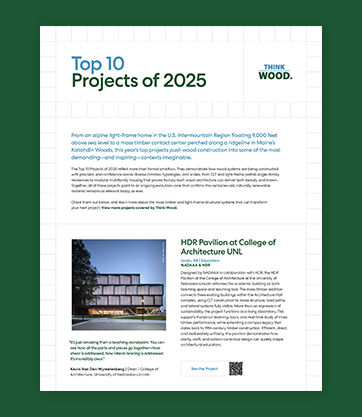 The Top 10 Projects of 2025 go beyond formal ambition, showcasing how wood systems are executed with precision and confidence across climates, typologies, and scales.